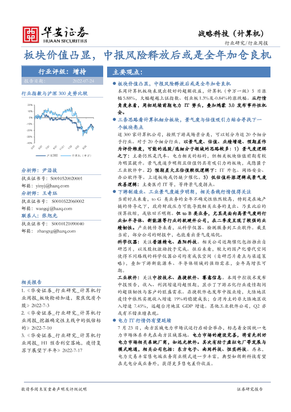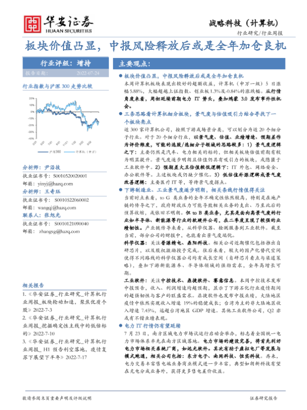 【华安证券】【20220724】20220724-华安证券-战略科技(计算机)行业周报:板块价值凸显,中报风险释放后或是全年加仓良机-19页