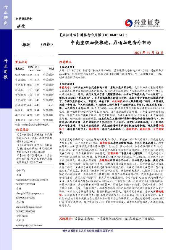 【兴业证券】【20220724】通信行业周报(07.18-07.24):中瓷重组加快推进,鼎通加速海外布局-12页
