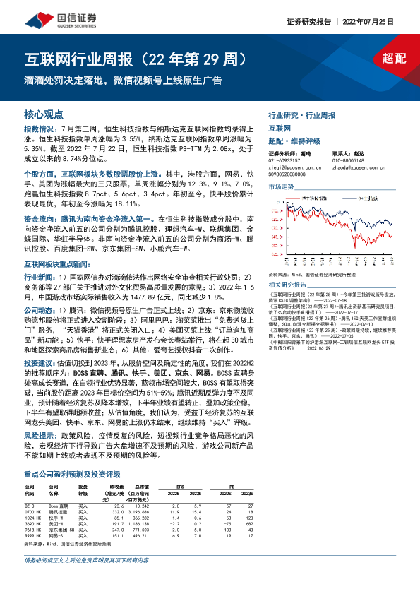 【国信证券】【20220725】20220725-国信证券-互联网行业周报(22年第29周):滴滴处罚决定落地,微信视频号上线原生广告-13页