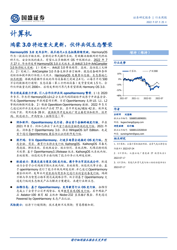 【国盛证券】【20220725】20220725-国盛证券-计算机行业周报:鸿蒙3.0将迎重大更新,伙伴共促生态繁荣-16页