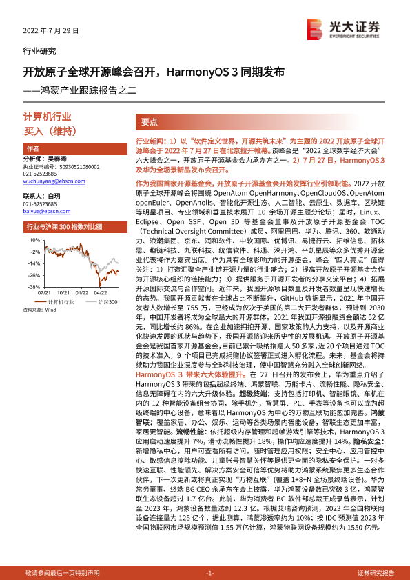 【光大证券】【20220729】鸿蒙产业跟踪报告之二:开放原子全球开源峰会召开,HarmonyOS 3同期发布-3页