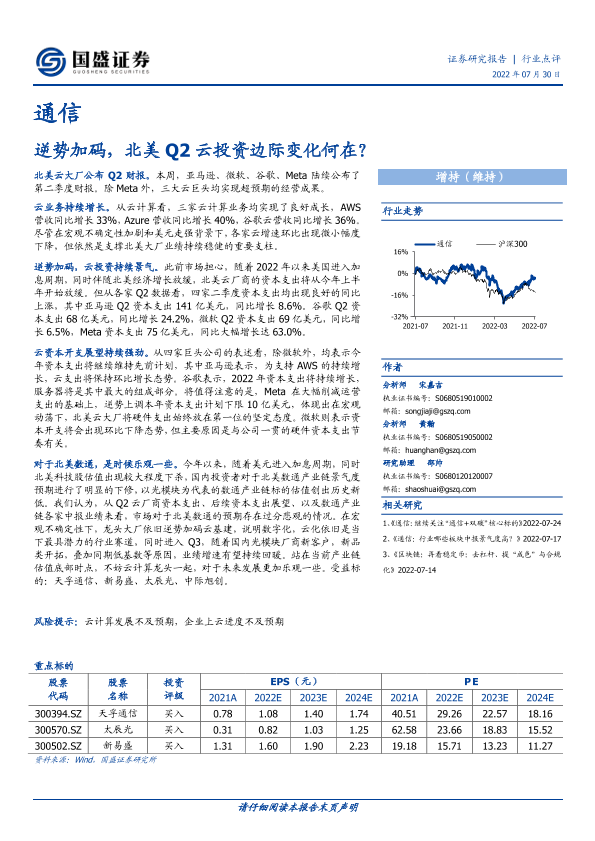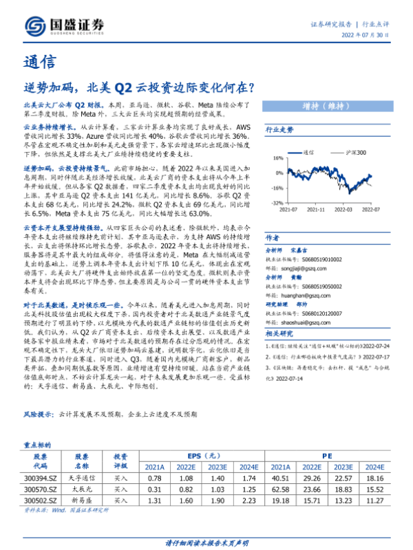 【国盛证券】【20220730】通信行业点评:逆势加码,北美Q2云投资边际变化何在?-6页