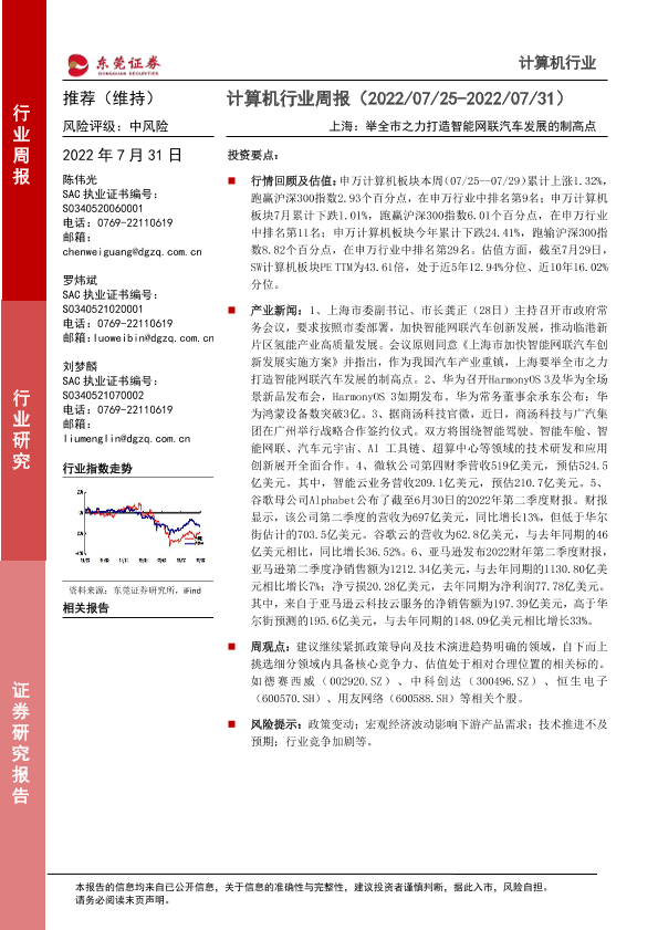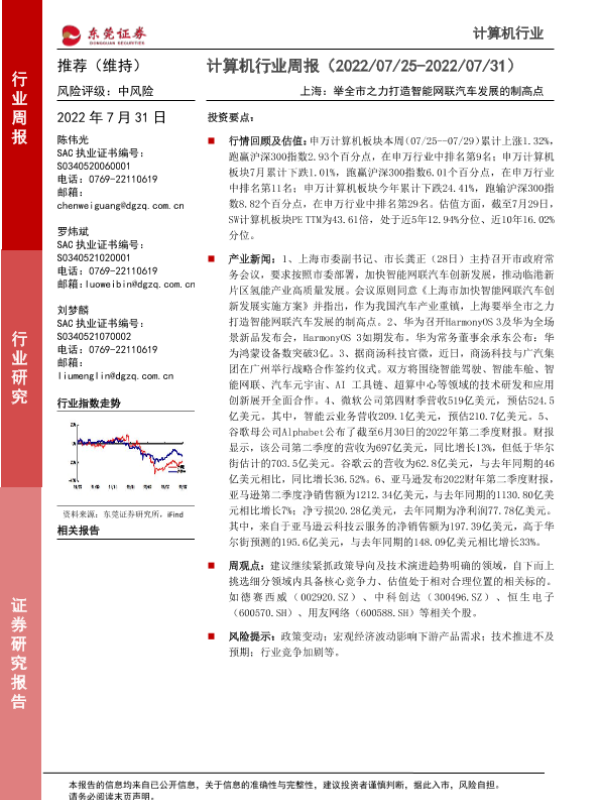 【东莞证券】【20220731】计算机行业周报:上海:举全市之力打造智能网联汽车发展的制高点-8页
