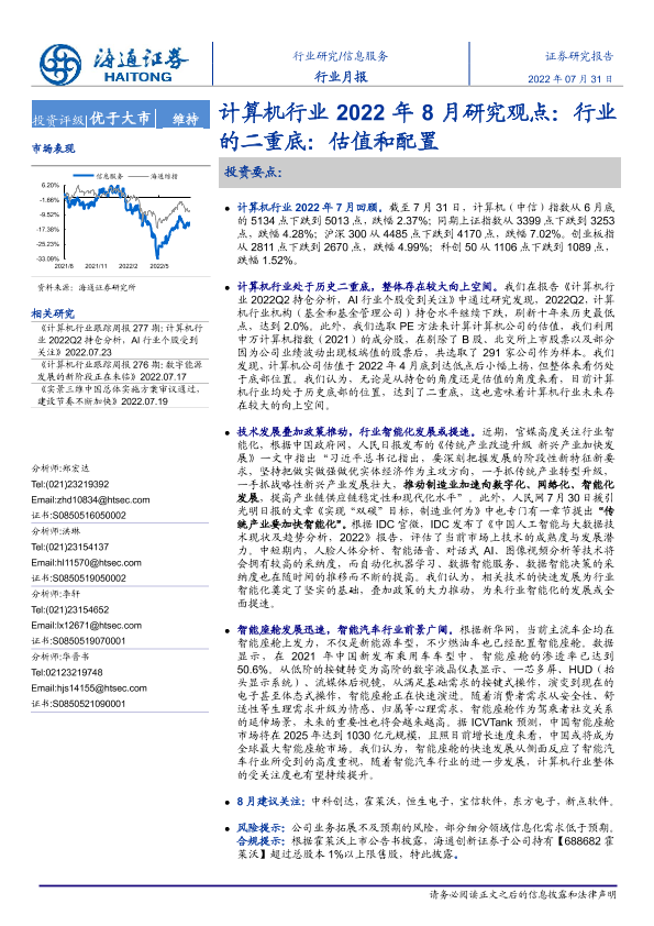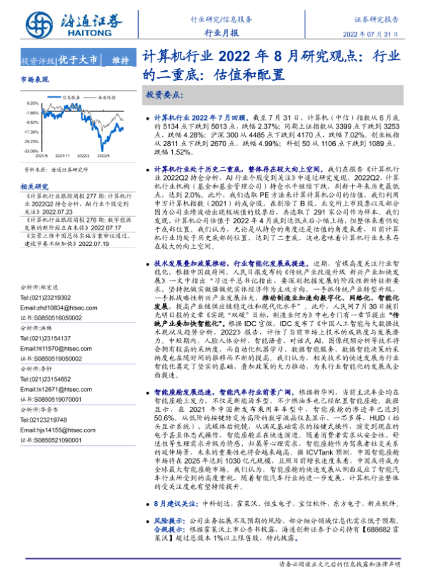 【海通证券】【20220731】计算机行业2022年8月研究观点:行业的二重底:估值和配置-4页