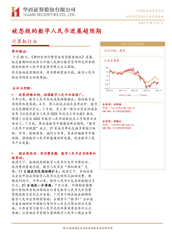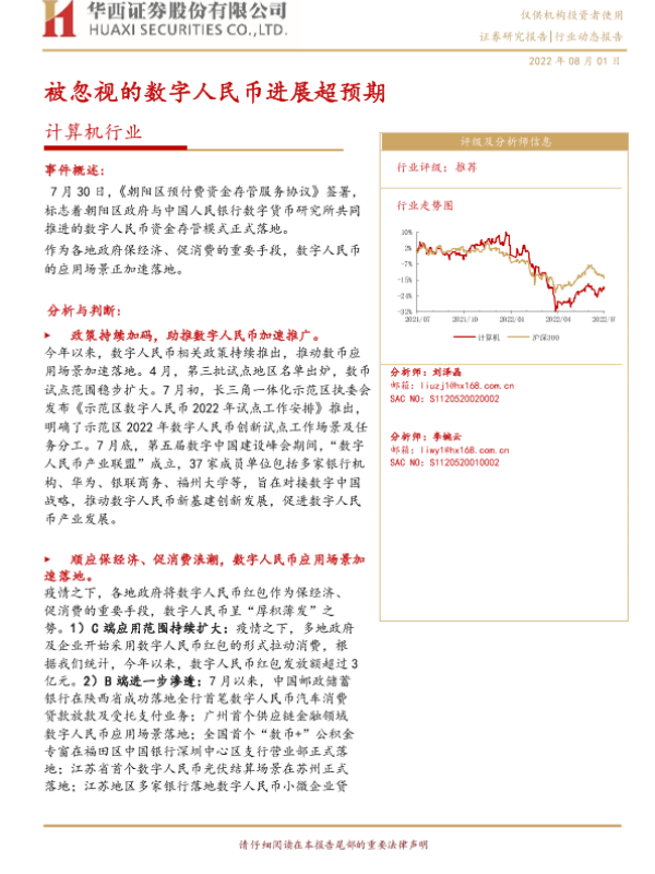 【华西证券】【20220801】计算机行业:被忽视的数字人民币进展超预期-11页
