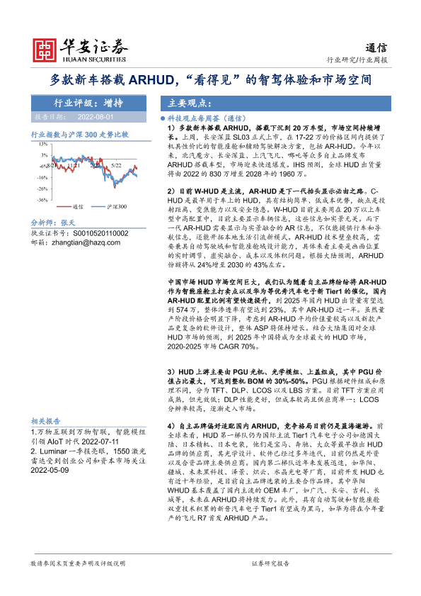 【华安证券】【20220801】多款新车搭载ARHUD,“看得见”的智驾体验和市场空间-21页