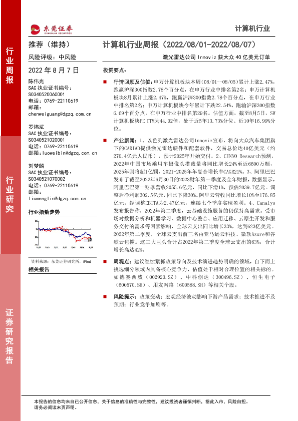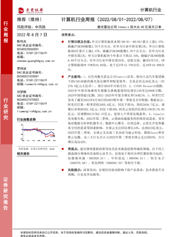 【东莞证券】【20220807】计算机行业周报:激光雷达公司Innoviz获大众40亿美元订单-8页