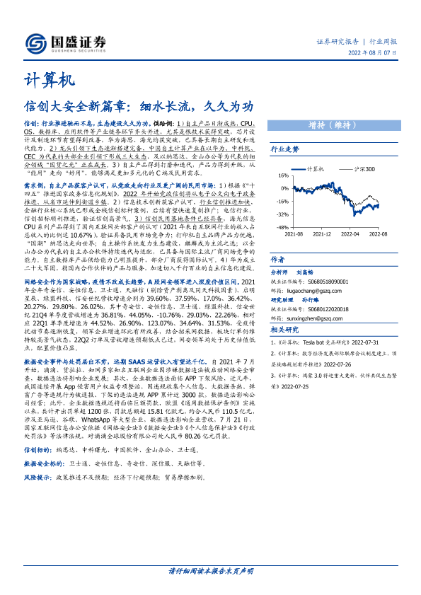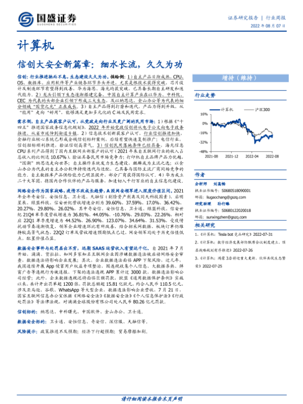【国盛证券】【20220807】计算机行业周报:信创大安全新篇章:细水长流,久久为功-19页
