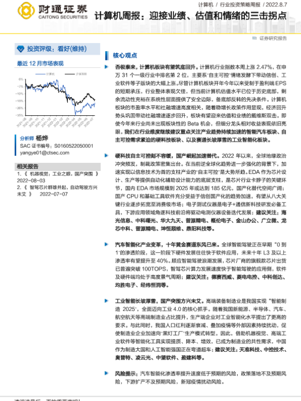 【财通证券】【20220807】20220807-财通证券-计算机周报:迎接业绩、估值和情绪的三击拐点-26页