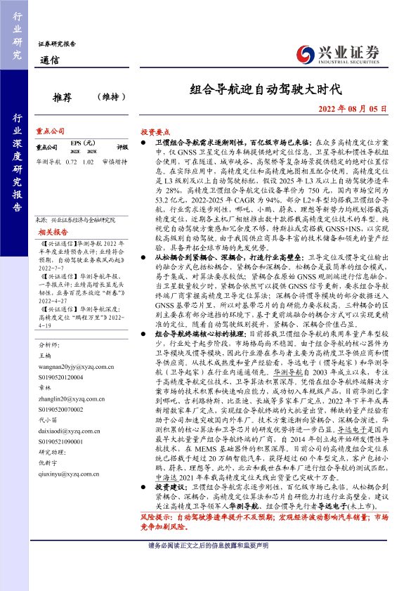 【兴业证券】【20220805】组合导航迎自动驾驶大时代-26页