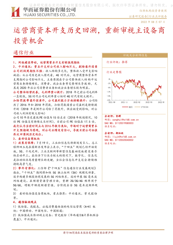 【华西证券】【20220807】通信行业:运营商资本开支历史回溯,重新审视主设备商投资机会-8页