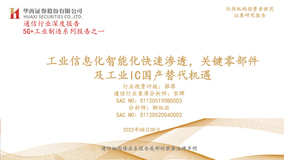 【华西证券】【20220805】20220805-华西证券-通信行业深度报告:5G+工业制造系列报告之一-工业信息化智能化快速渗透,关键零部件及工业IC国产替代机遇-159页