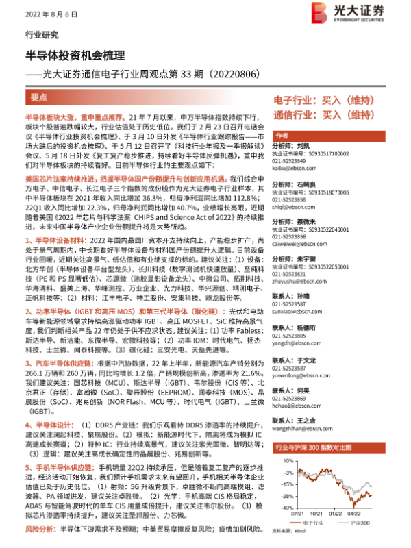【光大证券】【20220808】20220808-光大证券-通信电子行业周观点第33期:半导体投资机会梳理-17页