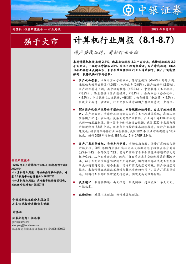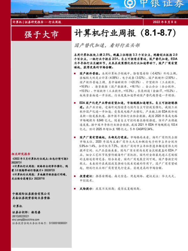 【中银证券】【20220808】20220808-中银证券-计算机行业周报:国产替代加速,看好行业头部-17页