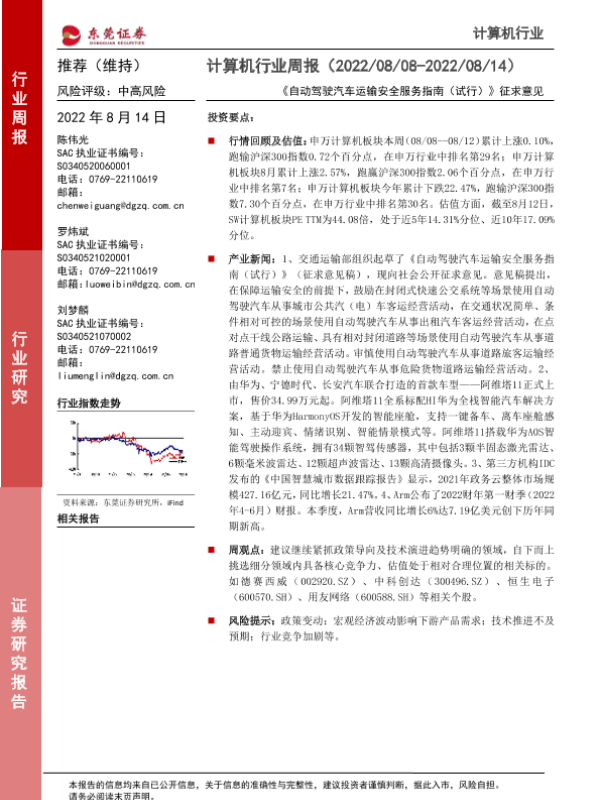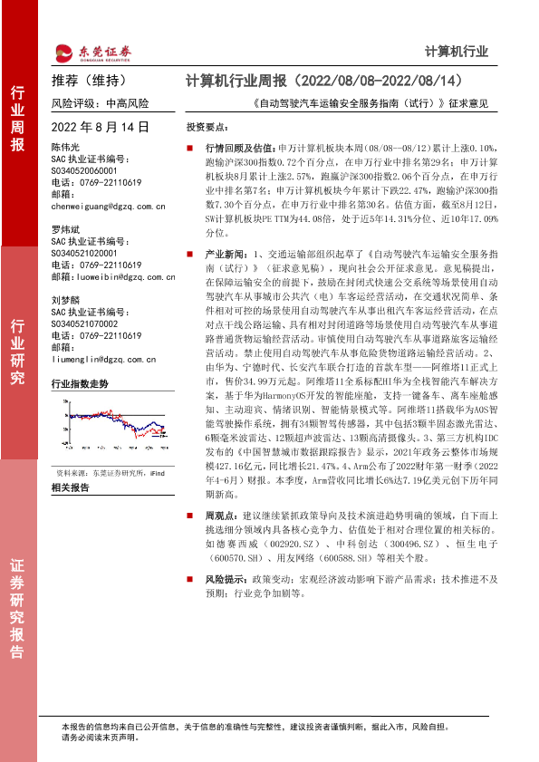 【东莞证券】【20220814】计算机行业周报:《自动驾驶汽车运输安全服务指南(试行)》征求意见-7页