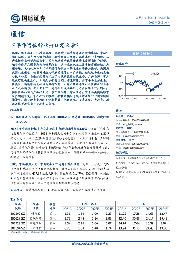 【国盛证券】【20220814】20220814-国盛证券-通信行业周报:下半年通信行业出口怎么看?-14页