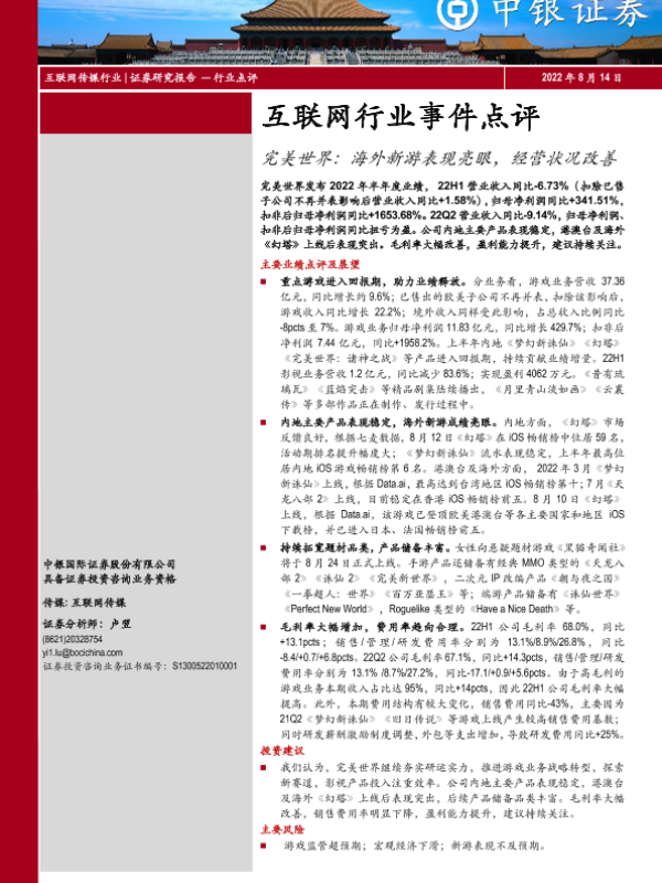 【中银证券】【20220814】互联网行业事件点评:完美世界:海外新游表现亮眼,经营状况改善-3页