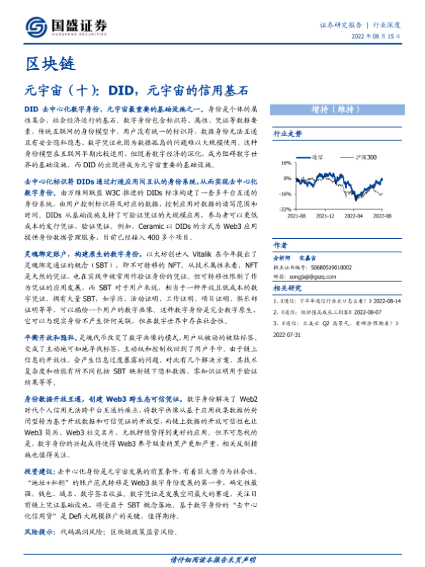 【国盛证券】【20220815】区块链:元宇宙(十):DID,元宇宙的信用基石-31页