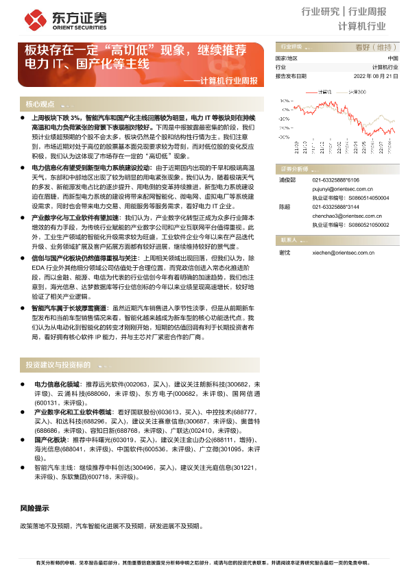 【东方证券】【20220821】20220821-东方证券-计算机行业周报:板块存在一定“高切低”现象,继续推荐电力IT、国产化等主线-11页