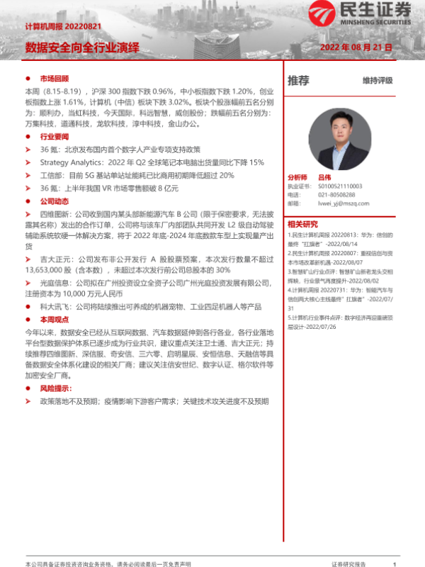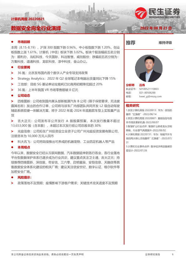 【民生证券】【20220821】计算机周报:数据安全向全行业演绎-21页
