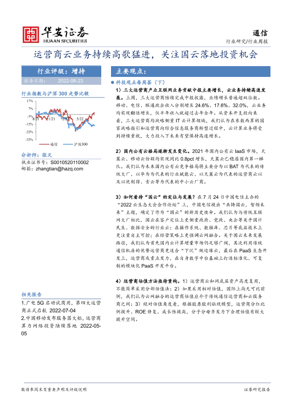 【华安证券】【20220823】20220823-华安证券-通信行业周报:运营商云业务持续高歌猛进,关注国云落地投资机会-16页