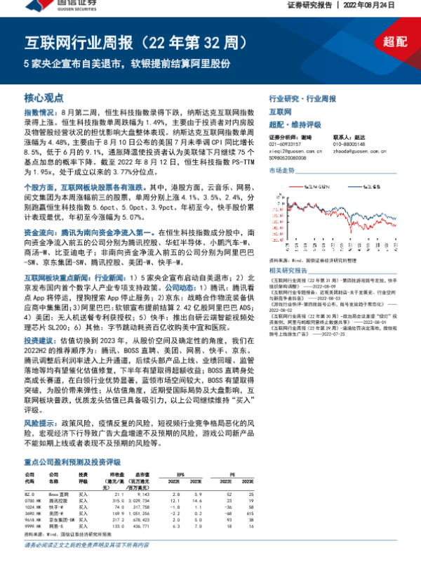 【国信证券】【20220824】互联网行业周报(22年第32周):5家央企宣布自美退市,软银提前结算阿里股份-12页