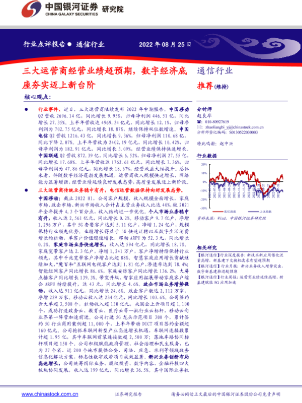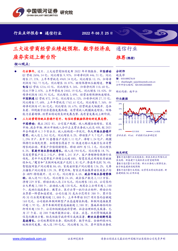 【银河证券】【20220825】通信行业:三大运营商经营业绩超预期,数字经济底座夯实迈上新台阶-4页