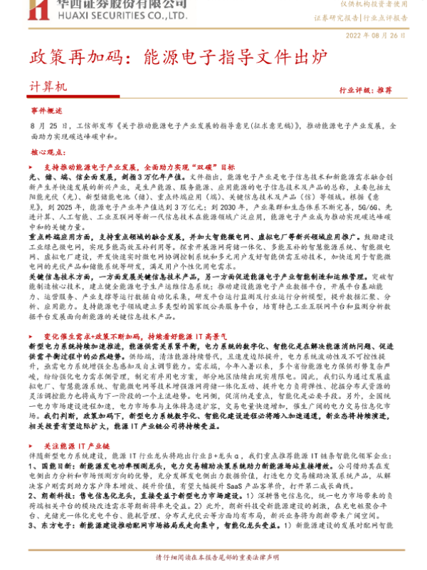 【华西证券】【20220826】计算机行业点评报告:政策再加码:能源电子指导文件出炉-4页