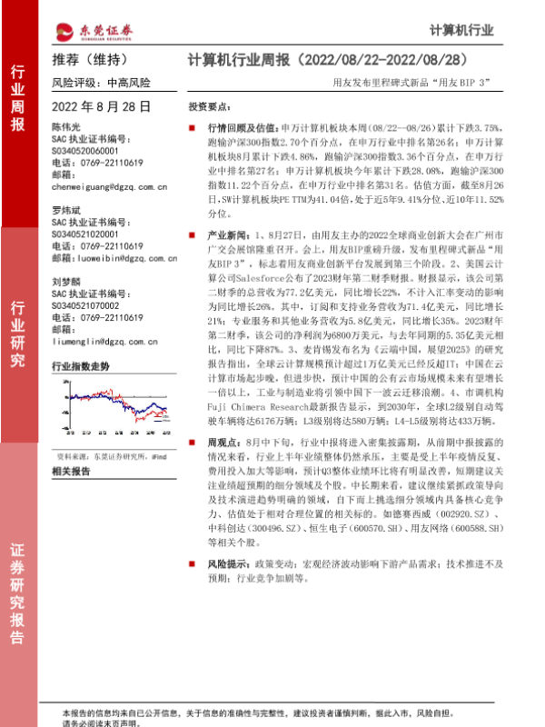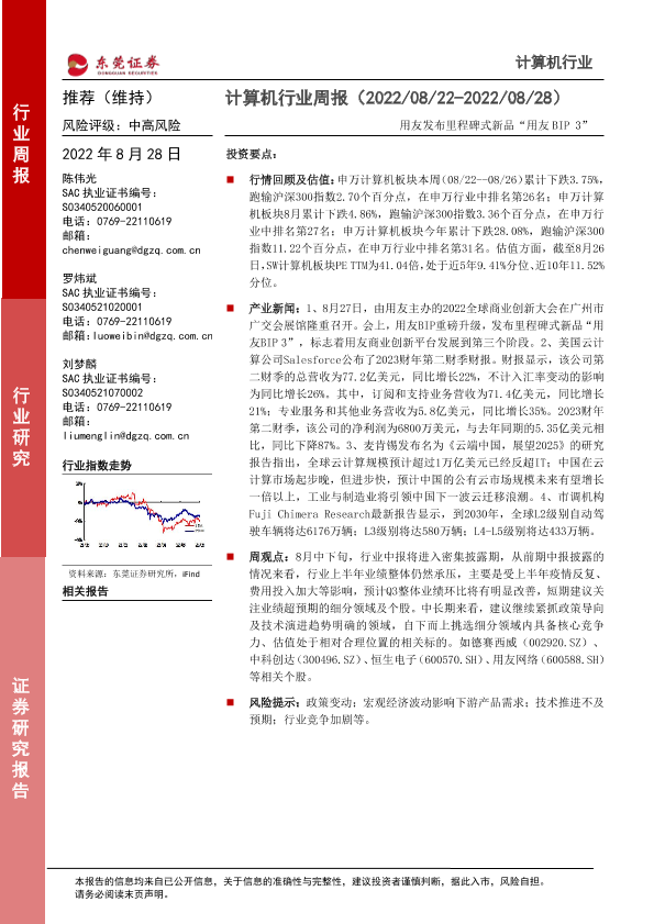 【东莞证券】【20220828】计算机行业周报:用友发布里程碑式新品“用友BIP3”-8页
