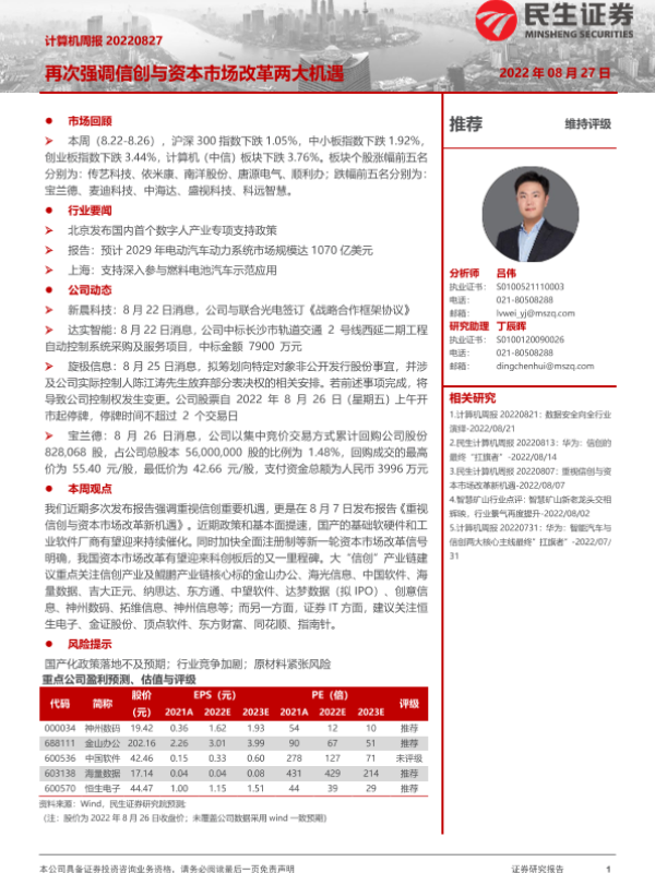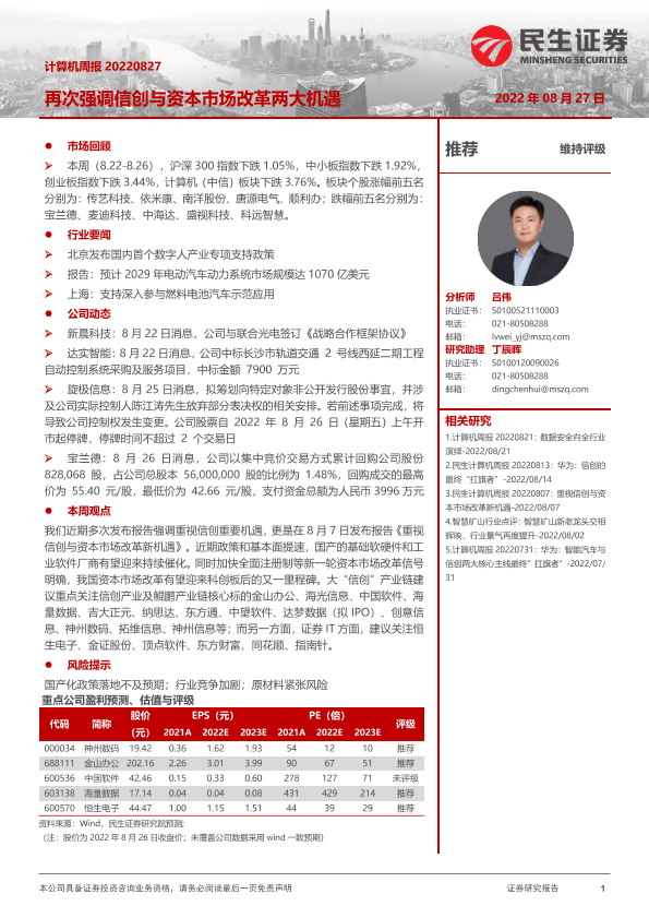 【民生证券】【20220827】20220827-民生证券-计算机周报:再次强调信创与资本市场改革两大机遇-21页