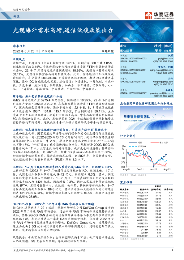 【华泰证券】【20220828】光缆海外需求高增,通信低碳政策出台-25页