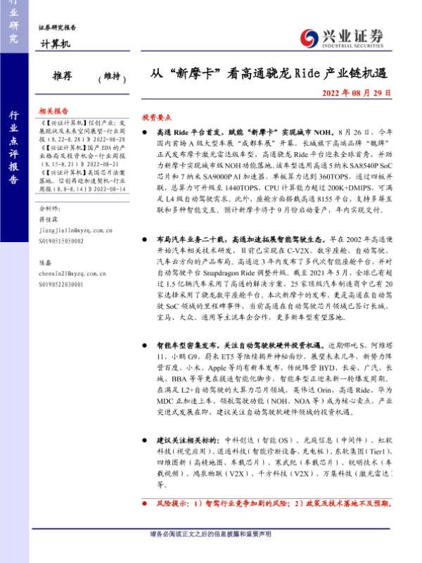 【兴业证券】【20220829】从“新摩卡”看高通骁龙 Ride产业链机遇-12页