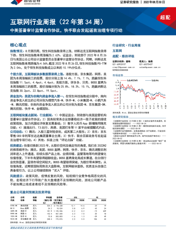 【国信证券】【20220830】互联网行业周报(22年第34周):中美签署审计监管合作协议,快手联合发起谣言治理专项行动-12页