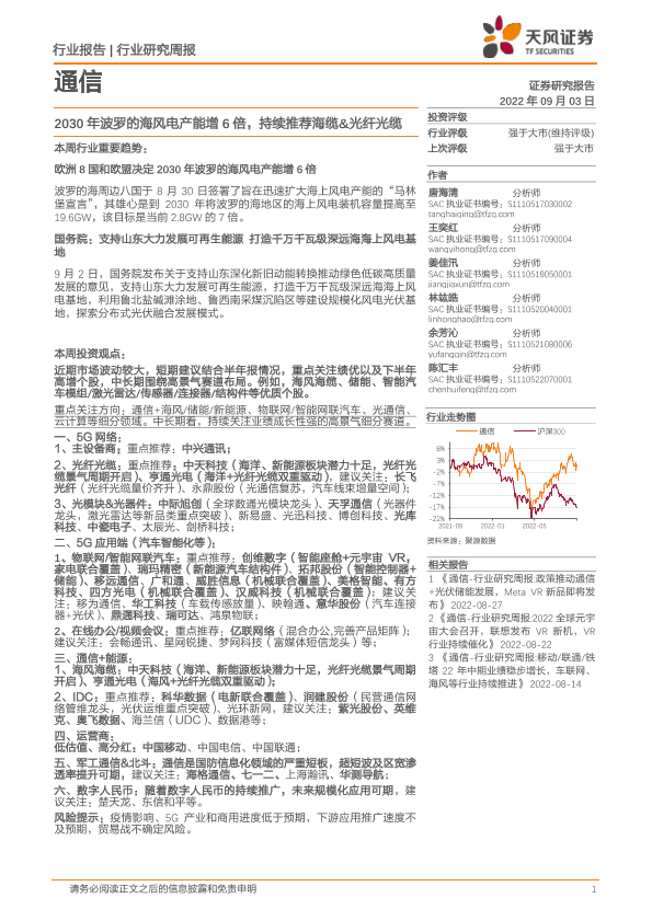 【天风证券】【20220903】20220903-天风证券-通信行业研究周报:2030年波罗的海风电产能增6倍,持续推荐海缆&光纤光缆-10页