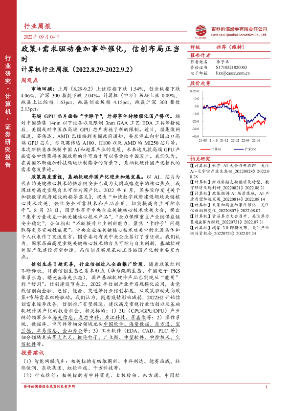 【东亚前海证券】【20220904】20220904-东亚前海证券-计算机行业周报:政策+需求驱动叠加事件催化,信创布局正当时-21页