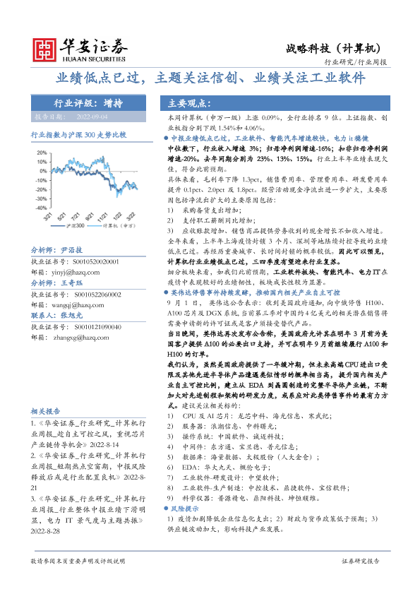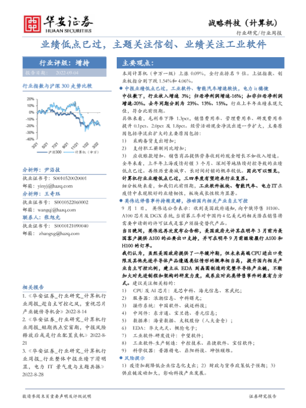 【华安证券】【20220904】20220904-华安证券-战略科技(计算机)行业周报:业绩低点已过,主题关注信创、业绩关注工业软件-20页