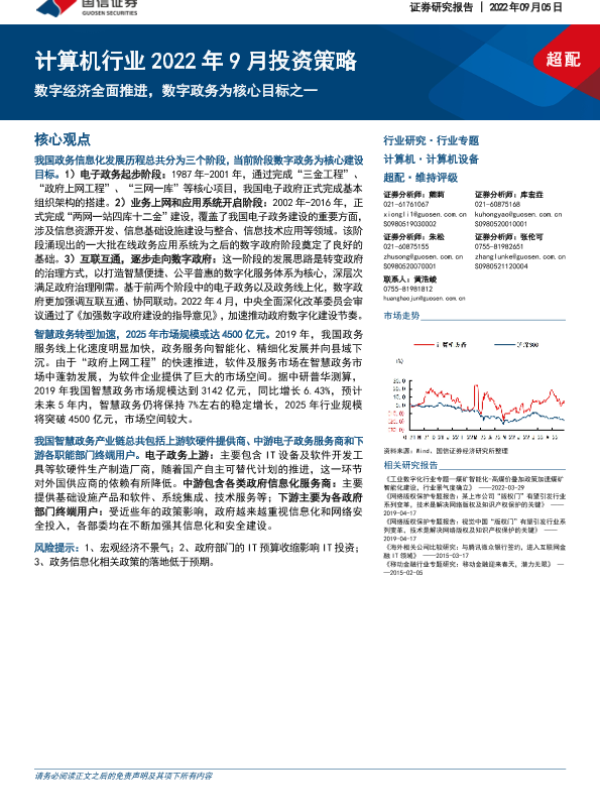 【国信证券】【20220905】计算机行业2022年9月投资策略:数字经济全面推进,数字政务为核心目标之一-19页