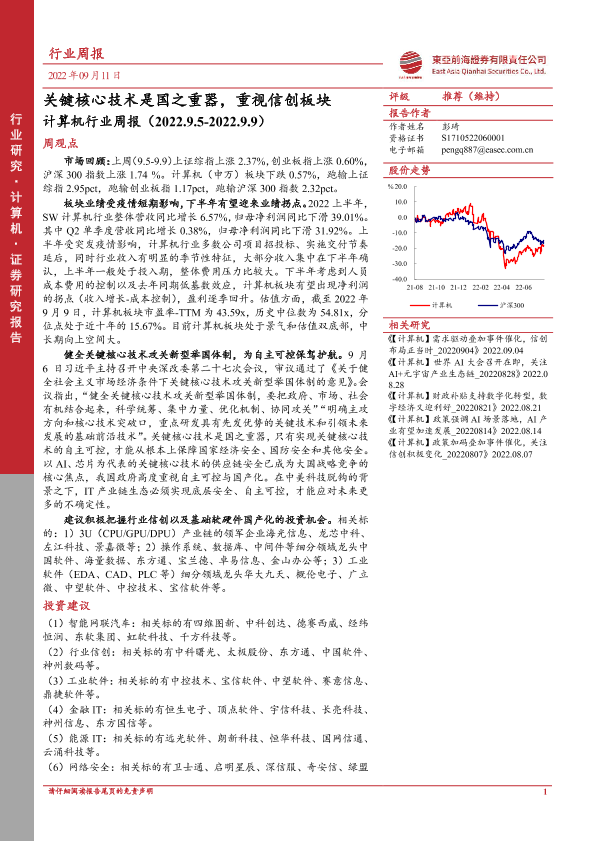 【东亚前海证券】【20220911】20220911-东亚前海证券-计算机行业周报:关键核心技术是国之重器,重视信创板块-15页