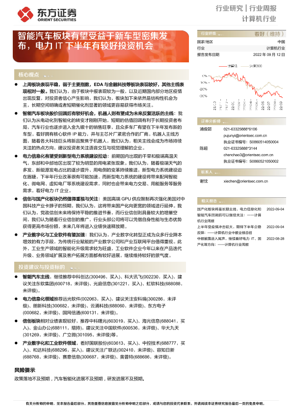 【东方证券】【20220912】20220912-东方证券-计算机行业周报:智能汽车板块有望受益于新车型密集发布,电力IT下半年有较好投资机会-11页