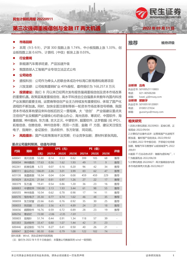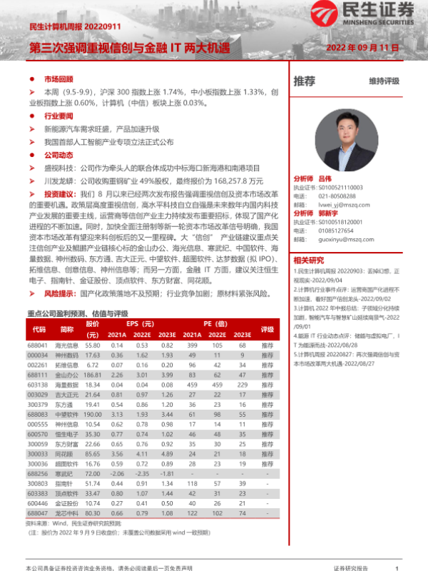 【民生证券】【20220911】民生计算机周报:第三次强调重视信创与金融IT两大机遇-24页