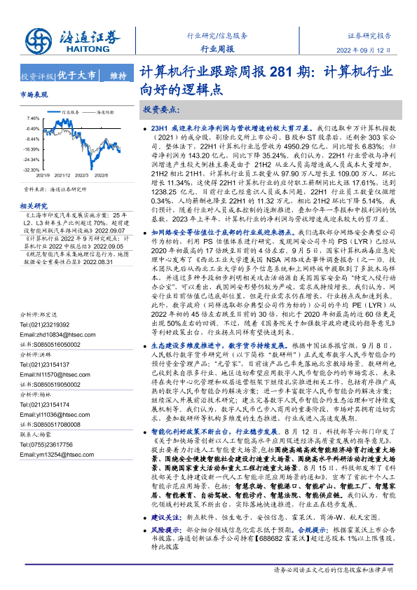 【海通证券】【20220912】计算机行业跟踪周报281期:计算机行业向好的逻辑点-3页