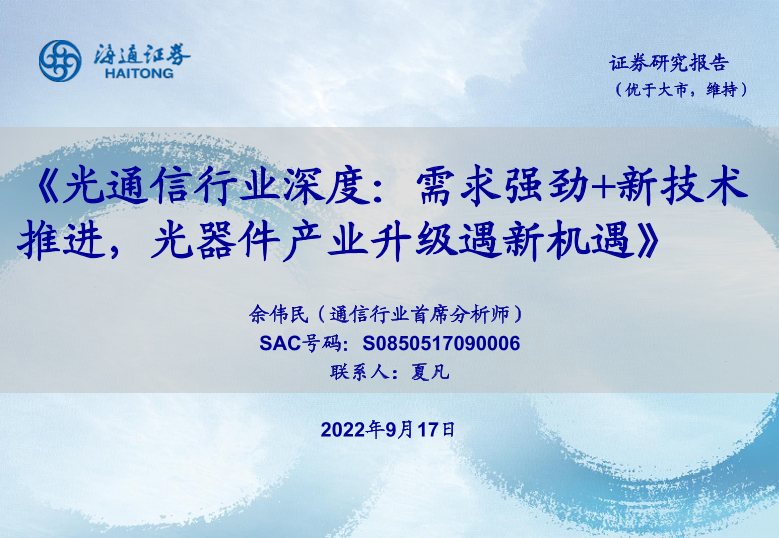【海通证券】【20220917】光通信行业深度:需求强劲+新技术推进,光器件产业升级遇新机遇-43页
