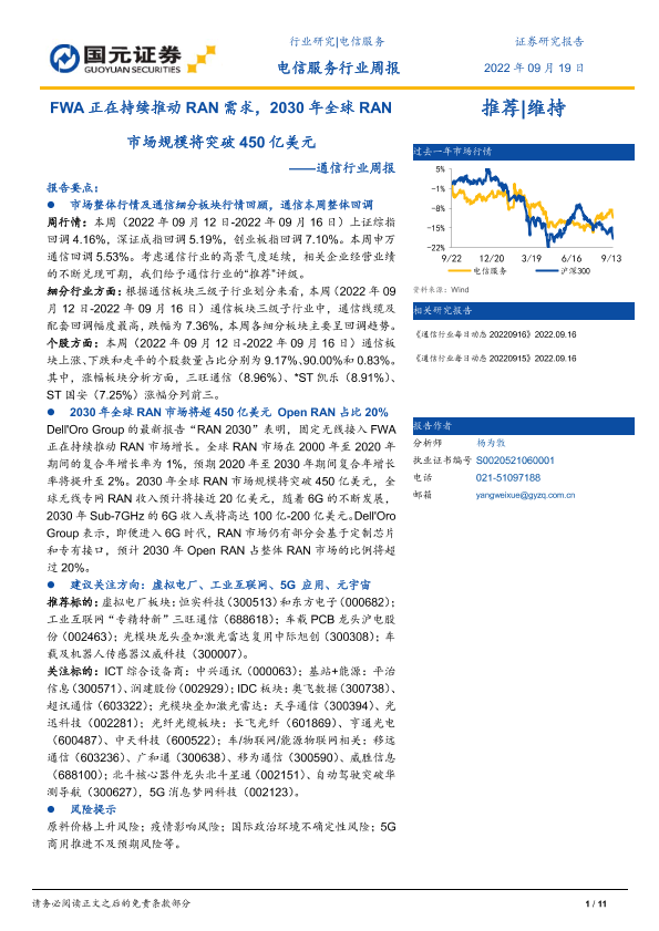 【国元证券】【20220919】通信行业周报:FWA正在持续推动RAN需求,2030年全球RAN市场规模将突破450亿美元-11页