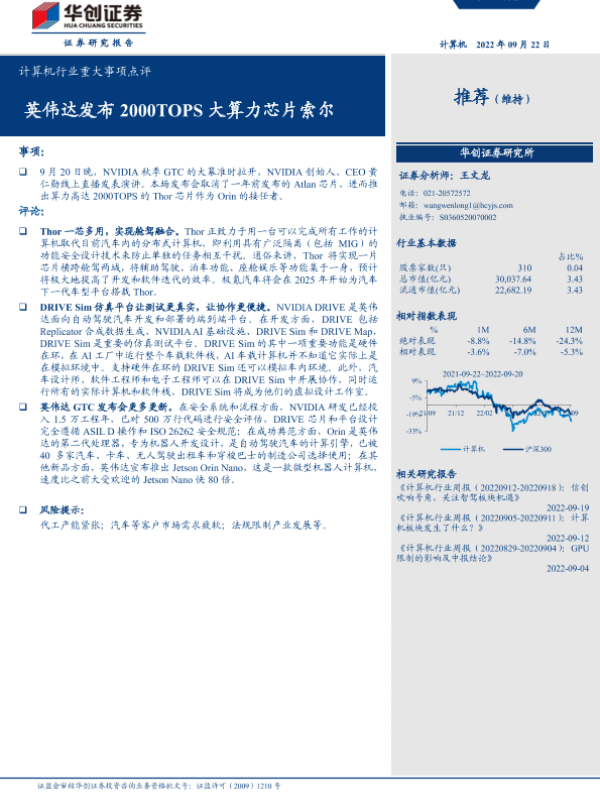 【华创证券】【20220922】计算机行业重大事项点评:英伟达发布2000TOPS大算力芯片索尔-12页