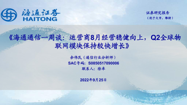 【海通证券】【20220925】海通通信一周谈:运营商8月经营稳健向上,Q2全球物联网模块保持较快增长-12页