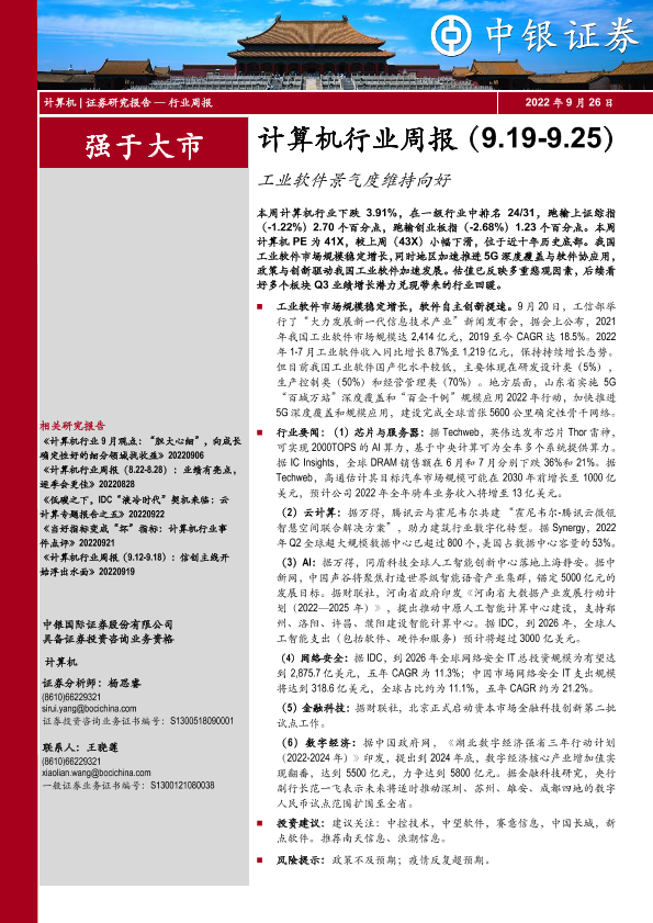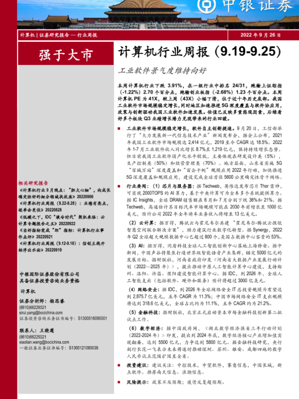 【中银证券】【20220926】计算机行业周报:工业软件景气度维持向好-13页