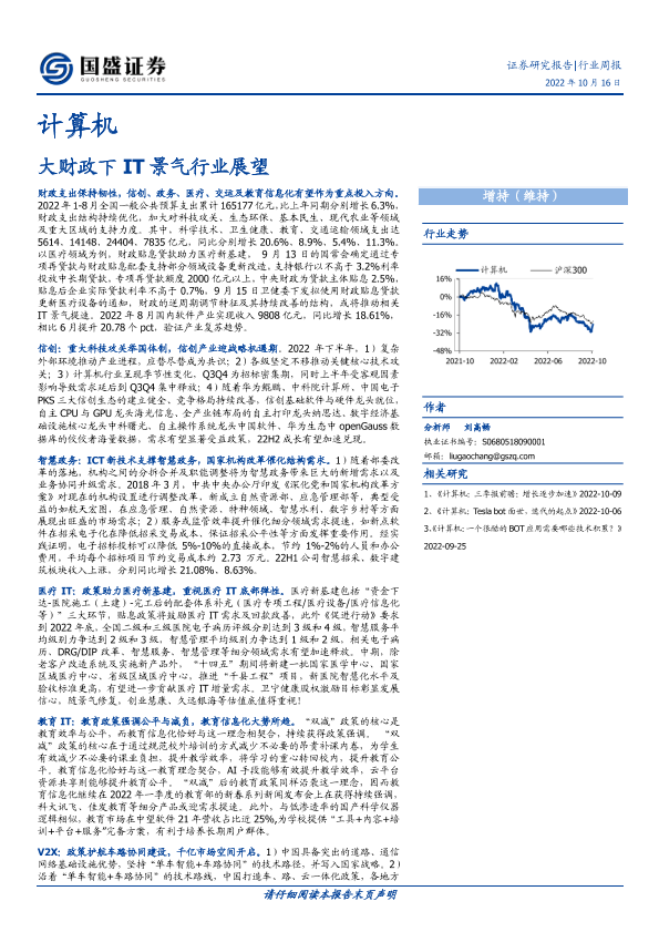 【国盛证券】【20221017】计算机行业周报:大财政下IT景气行业展望-23页