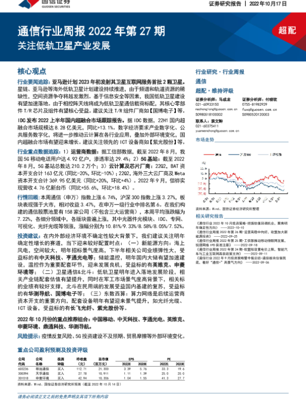 【国信证券】【20221017】通信行业周报2022年第27期:关注低轨卫星产业发展-29页