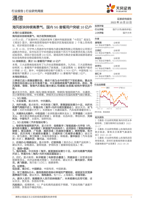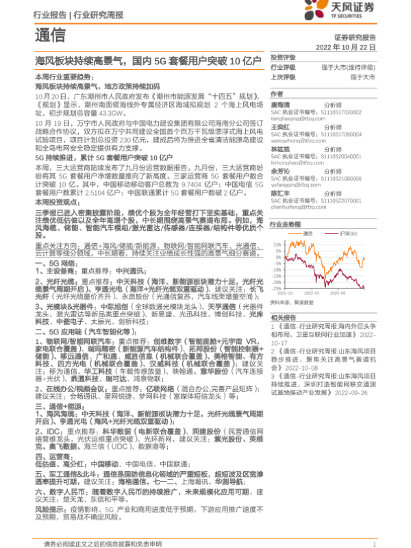 【天风证券】【20221022】20221022-天风证券-通信行业研究周报:海风板块持续高景气,国内5G套餐用户突破10亿户-11页