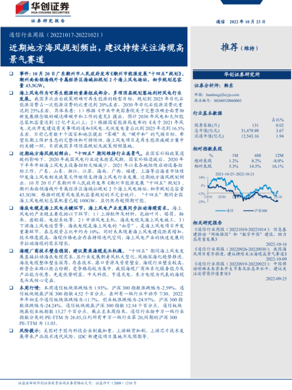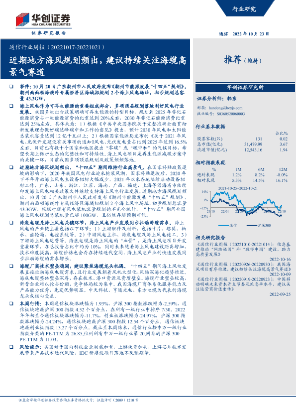【华创证券】【20221023】通信行业周报:近期地方海风规划频出,建议持续关注海缆高景气赛道-18页